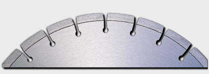 Diamond Blades for saw cutting concrete with a walk behind saws - Soff Cut diamond blades for early entry saws - blades for cutting asphalt and concrete with asphalt overlay - We sell diamond blades from Husqvarna Soff Cut - Target, Wacker, Hilti, Americut and Diteq How does a diamond blade work? A diamond tool consists of a support blade, a wire or drill tube, together with a cutting edge that has segments or beads containing diamonds. The segments or beads consist of a mixture of diamonds and a bond, usually a metal powder, which is sintered together under high pressure and temperature. The tool’s performance is related to the quality of the diamonds and the concentration of diamonds in the segments. When used, the diamond tool forms an increasingly deeper groove in the material that is being cut. The diamonds in the surface of the segments wear down eventually, at the same time as the bond is worn away to expose new diamonds. So it is also very important that the hardness of the bond is suitable for the material to be cut. |