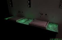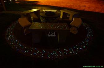 | Our AGT™ line of commerical-grade aggregates & coatings feature the highest luminosity and longest afterglow scientifically possible. What this means to users is that any concrete, cement, terrazzo, epoxy or stucco project which utilizes AGT™ will actually transform these surfaces into renewable LEED-friendly 'accent' lighting sources. AGT™ allows your interior/exterior concrete, cement, stucco or epoxy projects to illuminate for over 10+ hours after being exposed to a light source for only 10 minutes and requires NO ELECTRICITY!!! Our self-emitting light technology transforms your interior and exterior projects into unique, safety-conscious, alternative light sources which actually decrease the use of ambient electrical lighting by 80%. |